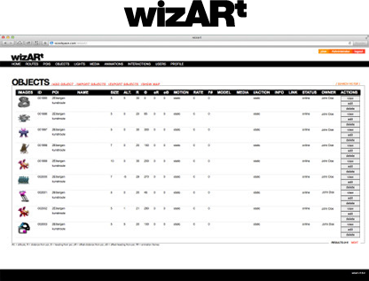 objects from anywhere with anybody. Wizart is running on a LAMP platform with a node.js