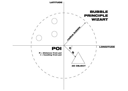 GPS location via the CMS. Once a viewer enters the bubble all objects that are attached to that